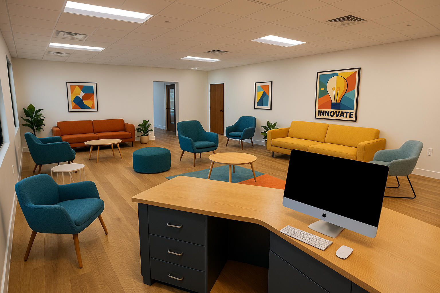 The LANDING PAD is a welcoming, flexible space designed for connection, collaboration, and first steps in Bluffton. It offers a professional place for meetings, introductions, and working sessions—along with a temporary home base for companies exploring a move to the area. Whether you’re visiting, evaluating the local business climate, or building early relationships, the LANDING PAD makes it easy to plug into Bluffton’s innovation community.